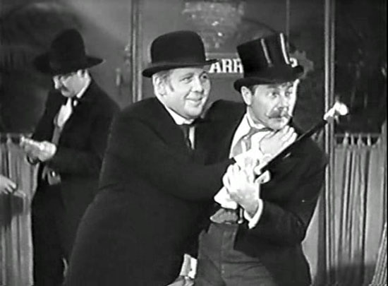 The Invisible Man – Another James Whale mad scientist film, with Claude Rains as the man who experiments on himself with an invisibility drug that has the unfortunate side-effect of making him criminally insane. There follows some great suspense and action as Rains wreaks havoc throughout the English countryside as the police and his former colleagues try to find him and stop his murderous rampage. The opening sequence with him trying to work in a country inn is marvelous, though Una O’Connor is possibly even more annoying than she was in Bride of Frankenstein. Rains is terrific, acting with just his marvelous voice and the general shape of his face and body. The rest of the cast is pretty good as well (including Gloria Stuart, the old lady from Titanic and Henry Travers, Clarence the Angel in It’s a Wonderful Life). The #9 film of 1933.