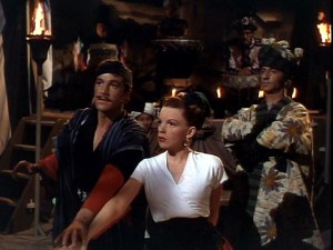 The Black Swan – The first part of a TCM-enabled Maureen O’Hara Pirate Movie Double Feature (the second part being a rewatch of Frank Borzage’s The Spanish Main, which I enjoyed a lot more the second time around). Tyrone Power stars as a pirate who goes straight when his boss Captain Morgan (Laird Cregar) becomes the legitimate governor of Jamaica. Not that that helps him much in his romance with O’Hara, the former governor’s hot daughter. Villainy comes in the form of an absurdly red-haired and -bearded George Sanders, a pirate who refuses to sell out to the man. Thomas Mitchell and Anthony Quinn also star in what adds up to a whole lot of fun, much more so than the other adaptation of a Rafael Sabatini novel I’ve seen, 1935’s Captain Blood (despite that film’s memorable combination of Errol Flynn, Basil Rathbone, Olivia DeHaviland and Michael Curtiz, for most of its run it’s boring as hell), for which I’m going to credit screenwriter Ben Hecht. O’Hara and Sanders are as wonderful as ever here, and Power is at his Clooneyest. The #12 film of 1942.