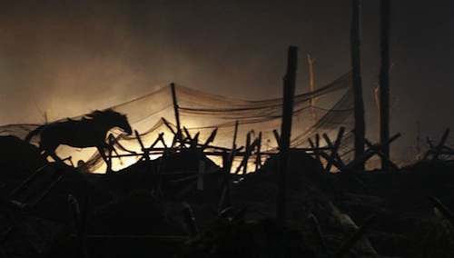 I’m frankly flabbergasted by any comparisons with John Ford, who never made a film whose characters and relationships were this lacking in nuance. Franks Borzage and Capra make a little more sense, but in their films the emotions grow organically out of the characters and their specific spiritual/political belief systems, whereas in War Horse every sequence is built instead around the emotional note Spielberg wants to hammer into you. Compare the construction of a Borzage film like Street Angel or Seventh Heaven, built around small-scale character interactions that slowly build to an ecstatic spiritual release, one that, despite its unreality is made believable by the solidity of the characters and their relationship with each other, to the construction of War Horse, which leaps from emotion to emotion with no time for character development in between. This is partly a byproduct of the film’s episodic nature, but even the central relationship of the film, the one that bookends and unbalances it, the relationship between Albie the English Farmboy and Joey the Horse begins at 11 and never modulates, never deepens. Instead, the characters we get are pure types: precocious but sickly girl, kindly grandfather, naive kids, cruel German and all kinds of horse-lovers: melancholy rich officers, kind-hearted fat man, determinedly insouciant Englishmen, etc. It’s telling that the most authentic, believable relationship in the film, and one of the loveliest same-sex partnerships I’ve seen in awhile, is between two horses.