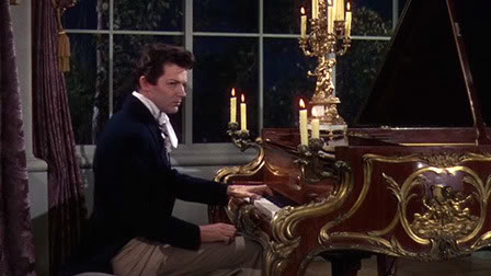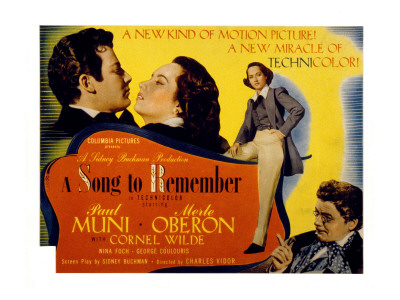 A Song to Remember anticipates Amadeus‘s trick of telling the story of the genius at its center through a secondary character, in this case, Chopin’s teacher Professor Elsner, played by Paul Muni (Scarface himself). The film begins with Chopin (Cornell Wilde, Oscar nominee, with the excellent José Iturbi, the quest object of Anchors Aweigh, playing the piano parts) as a young man in Poland playing the piano and committed to radical anti-Russian politics (as it was more often than not in its history, Poland was then being ruled by a foreign power). At a big recital at a rich nobleman’s house (Chopin performs right after Paganini, giving us an early example of that wonderful biopic tradition: playing the spot-the-famous-person game), Chopin angrily denounces the new Russian governor-general.