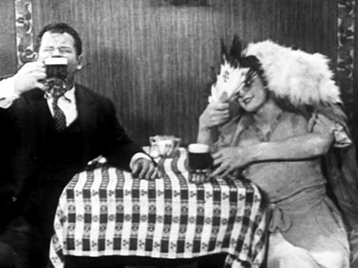 James Finlayson plays a millionaire drunk who accidentally gets married one night on a bender. Oliver Hardy plays his butler (this isn’t the first time Hardy’s played a butler and I don’t really get it, he doesn’t seem right for that type of part at all to me). The new wife turns out to be a grifter and her brother blackmails Finlayson. The lawyer, Stan Laurel, is called in to help (this sequence has the best touch in the film: looking closely you can see that Laurel’s office, specifically his telephone, is covered in cobwebs; it’s that kind of attention to detail that leaks through even the worst films of great filmmakers. The production still at the top shows the office without dust). But abruptly, the reel ends here with the three heroes running away from the gun-toting brother and the second part starts with them hiding out at the sea shore. The grifters discover their location thanks to a newspaper item about Finlayson and 27 chorus girls (interestingly, the rest of the newspaper is taken up with a story about Edward Muybridge, whose photographic experiments helped lay the foundation for motion picture technology). When the bad guys show up at the hotel, we get an early version of what will become a Laurel & Hardy catchphrase: Laurel says to Hardy, “A fine mess you’ve made of things!” What follows are some typical chase antics, including the “Laurel sits on Finlayson’s back and they pretend to be a ridiculously tall woman” gag from Love ‘Em and Weep, which is extended here far past the point where it’s actually funny.