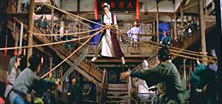 The film is simply bursting with minor characters that Chor, along with the great stable of actors at his disposal at Shaws, is able to give more depth than their screen-time really earns. The most poignant, and disturbing, scene in the film comes near the end, as Uncle Sun makes his painstaking (and rather unbelievable) escape from an assassination attempt. A man who owes him his life helps him, and the price for that loyalty, as he well knows, is that he’ll have to kill himself to prevent Uncle Sun’s enemies from getting any information from him. Unfortunately, both the man’s wife and two children also see Uncle Sun. So the man and wife commit the group murder-suicide honor demands. It’s absolutely heart-breaking, and pushes the bounds of good taste, not unlike Hitchcock blowing up the kid on the bus in Sabotage. It’s telling though that in a film about disloyalty and betrayal, it’s those who are most loyal and honorable to their bosses who seem to suffer the most. Not only this simple peasant family, but everyone who aids Uncle Sun’s escape dies for the cause while only by betraying his master does Meng Sheng Wen defeat the “bad guys” and ride off with the pretty girl.
