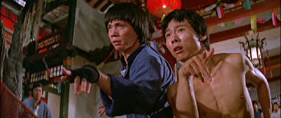 Several years later, Chen is a struggling street performer (he has a trained monkey) who befriends a local pickpocket, serendipitously named Little Monkey.  Chen trains Little Monkey in the way of the Monkey Fist so that he can defeat the local extortion gang.  When that gang turns out to be headed by Lo Lieh, who savagely beats the unprepared Little Monkey, the training begins in earnest for a final revenge showdown.  These final training and fight sequences are some of Lau’s best work as a choreographer.  The last training session, with Chen displaying impossibly quick and detailed movements and Little Monkey quickly learning to mimic them until the two are totally in sync reminded me of nothing less than one of the great tap duets in film history, Gene Kelly & Donald O’Connor’s “Moses Supposes” from Singin’ in the Rain.