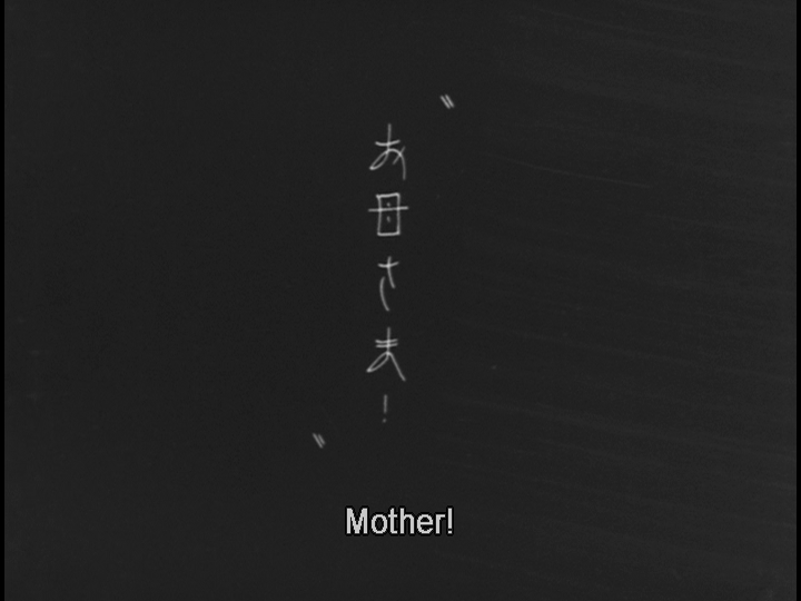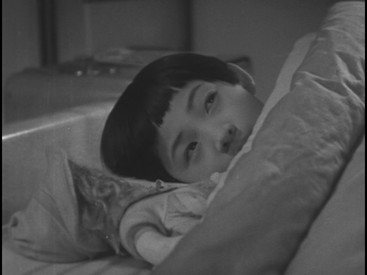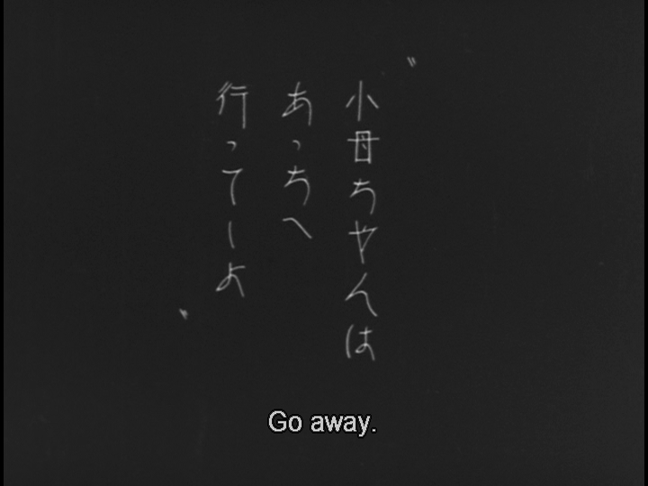 Shigeko runs away but is quickly found by the brother and the thief. After a short struggle, she drops her doll and is hit by a passing bicyclist (Masako isn’t there to save her from traffic this time). Now this sweetest match-cut is followed by the saddest, in turn followed by the coldest line in the film: