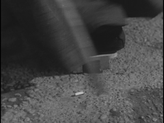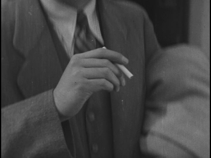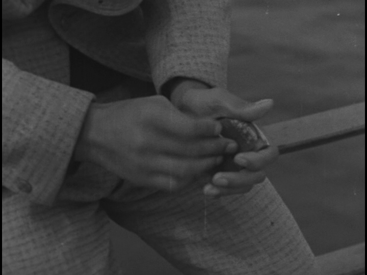 The thief striking a match and lighting his own cigarette. The two men are actually in cahoots (the man in the suit has pocketed the stolen purse, thus allowing the thief to show he didn’t have it). Naruse throughout the film uses these kind of match-cuts to link characters, not only across space but also emotionally.