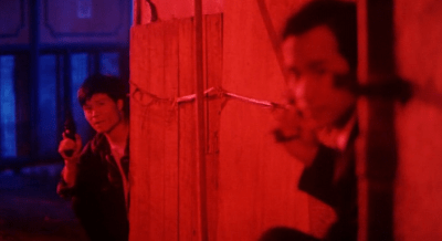 The film was apparently a very troubled production, going through a number of directors (see this interview with its screenwriter, Gordon Chan, who wrote and directed one of Jet Li’s greatest films, Fist of Legend, in 1994. Thanks to They Shot Pictures‘s Seema for the link) But there are certain visual touches that distinguish the film from the other crime movies of its time (Ringo Lam’s City on Fire or the Hark-produced John Woo films like A Better Tomorrow or The Killer) and point to what would prove to be one of To’s unique qualities as an auteur. Most obviously, there’s shootout between cops suffused in fire engine-red light, alternating with deep blue in reverse shots (much like the blue in the opening of To’s 1999 film Where a Good Man Goes), which abstracts the action into pure the image that Tsui’s graphic violence works so hard to make nauseatingly ‘realistic’. Later, there’s a magical bit of release as the cops, rejecting a bribe from the film’s villain, throw piles of cash into the air, watching it blow in the breeze, that recalls moments of childlike freedom snatched from darker realities in Throw Down (as when the plot is temporarily suspended so the three main characters can collaborate to free a red balloon from a tree) or the whole of Sparrow or the Running Out of Time films, which take what are ostensibly dark and violent gangster movie settings and turn them into spaces for play and possibility. Given the film’s convoluted production history, it’s impossible for me to say whether or not To was actually involved in the shooting of these scenes. But they’re nonetheless evocative of his later work, as is the characterization of the film’s hero.