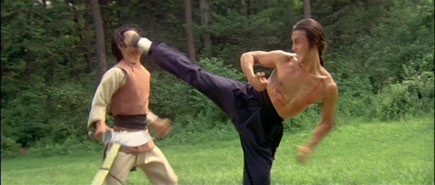 I moved to the city just at the tail end of Hong Kong cinema’s trendiness: throughout the 90s, the Varsity Theatre (where I later worked) would play weekly double bills of Jet Li, John Woo, Jackie Chan, Chow Yun-fat, Ringo Lam, Tsui Hark and so on. But with the exodus of talent off the island in the wake of the handover to China (all of the above went to Hollywood, at least for awhile), the deterioration of existing prints and the rise in the cost of running repertory, as well as the inevitable change in what counted as fashionable cult cinema, the films disappeared from Seattle screens. Less than ten years later, when we were trying to book Jackie Chan’s Police Story for a little rep series we were running at the Metro, we were told that no one even knew who had the theatrical rights to those movies anymore. Any Chan, Li, or Shaw Brothers movie we could think of was met with shrugged shoulders and a blank stare by Landmark’s film booking department. We ended up playing Bruce Lee’s Enter the Dragon simply because it was owned outright by an American company (Warner Brothers). Anyway, I was excited to revisit Zu after 15 years, after becoming more fluent in Hong Kong and kung fu cinema in the interim and looking to spend this summer exploring the work of Tsui Hark and Sammo Hung in more depth. So seeing it was on hulu, and in a subtitled version no less, was very exciting.