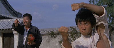 His first act as a director being the exposure of martial fraudulence, Lau then proceeds to build his career as a director on a contrary verisimilitude, on the depiction of actual martial arts by actual martial artists. This extends to the particular movements performed onscreen: Lau reportedly had serious clashes with Jackie Chan on the set of Drunken Master II over Chan’s refusal to perform the orthodox Drunken Boxing style. Most of Lau’s films will begin with a non-diegetic performance by the star or stars, in which the particular movements and kung fu styles that will be used in the film are demonstrated against a stark, one- or two-toned background. They are the baseline melodies of his films, the action scenes that follow are the variations and improvisations on these themes.