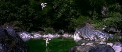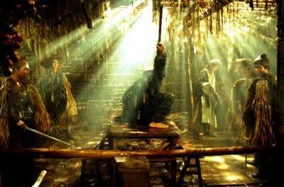 Ashes of Time, at least in the Redux version that is the only one currently available (I saw the old crappy DVD of the original cut years ago, but really don’t remember it all that well) is a remarkably beautiful film. Now, to some extent these things are subjective: one person’s gorgeous is another person’s indulgent (see also: the wuixa epics of Zhang Yimou), but I’ve never seen anything like this film’s hallucinogenic desert landscapes, overexposed colors threatening to burn themselves right out of the frame, step-printed slow-motion reducing Sammo Hung’s fight choreography to swirls of dirt and blood and death. Look carefully and you’ll see this is some of Sammo’s best work: the fluidity of his choreography is fully expressed in the blurs of Wong’s imagery. It’s exactly the opposite approach of Sammo’s own visual style, and that of the Shaw Brothers masters before him, with their emphasis on clarity and precision of movement. Nor is it like the montage-heavy wire-fu style of Ching Siu-tung, which uses editing to connect formal poses with impossible movements in an onslaught of high-speed action. Wong’s fights don’t just convey the visceral, emotional chaos of combat, as in the even more extreme montage approach of Paul Greengrass (to take one example out of many in contemporary Hollywood). The blur itself is a thing of beauty, with Sammo’s team’s highly skilled and organized movements still visible within the impressionistic images. In this way, it combines the emphasis on displaying real-life stunt man skill of the old Shaw style with a more expressive visual approach. Rather than hide the kung fu choreography behind a swirl of editing and cinematography, Ashes of Timerenders it more radically beautiful than had ever been done before.
