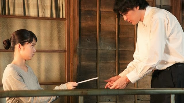 Japan’s submission for the 2013 Best Foreign Language Film Oscar, director Ishii Yuya’s quietly sweet comic drama chronicles the creation of a dictionary and the lives of the unusual people who devote 15 years of their lives to it. The central character is Mitsuya Majime, a reserved and book-obsessed young man who gets hired to help edit a new kind of dictionary in the fall of 1995. It’s to be a living dictionary, incorporating slang and modern usage while still reflecting the traditional language (“we’ll have notes about how the words are being misused” says the project’s leader, an aged and kindly curious professor). The dictionary is conceived as a boat that people can use to cross the vast, mysterious sea of words that inhibits people’s ability to communicate with each other. The metaphor is literalized throughout the film, with non-diegetic wave-lapping sounds and a recurring dream of an ocean in which Majime finds himself drowning. Majime, who in life finds communication with other humans almost impossible, proves a perfect fit for the job, and as he dives into the project begins to open up slightly, inching along the Asperger’s spectrum towards love and fulfillment. It’s these personal interactions, as Majime makes friends, falls in love and loses a father figure, warmly underplayed by all involved, that are the film’s strength. Ishii films with a relaxed dignity and the generous pacing gives his remarkable cast of actors time to develop their unassuming and often very funny characters. The biggest emotional beats in the film are barely indicated: a slight nod, a melt of the eyes and a barely perceptible smile makes as moving a declaration of love as I’m likely to see at the festival this year. That cast is uniformly excellent, featuring veterans like Go Kato (Samurai Rebellion) and Misake Watanabe (Kwaidan) alongside newer stars like Aoi Miyzaki (Eureka), Joe Odagiri (Princess Raccoon, Air Doll) and Ryuhei Matsuda (Gohatto). Matsuda as Majime and Miyazaki as his love interest, the aspiring chef (another job exacting in its dedication to detail) Kaguya, in particular stand out, both in their tenderly tentative courtship and in their later life, admiring and adoring each other still. “You’re so interesting.”