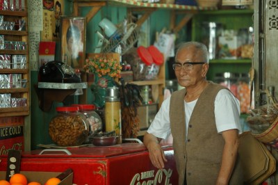 This Ip seems older than the other ones, though Anthony Wong is actually a couple of months younger than Tony Leung and only a few months older than Donnie Yen. Racked by bouts of stomach pain, he seems more frail. Maybe its just the awkward way Wong rolls and smokes his little cigarettes. I don’t know: acting. Ip is surrounded by a surrogate family of students, his first disciples There’s a hint of an early Christian vibe to their meal scenes together, which might be creepy in less sympathetic hands, or with a more demonstrative and forceful leader at the center. The story is narrated by two characters: Ip’s first student and sponsor in Hong Kong, a restaurant worker named Leung Sheung, and Ip’s oldest son, Ip Chun. Chun himself played a role in the first Yau film, and he returns in a much smaller, but much more poignant part. He plays the shopkeeper who tells Man he has a phone call, which turns out to be from Ip Chun. We see Man talk to the character Chun on the phone while the real Chun watches in the background. The phone call is the one where Chun tells his father that his wife, Chun’s mother, has died.
