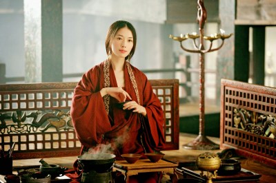 But even that wouldn’t have worked if it wasn’t for the heroic act of Zhou Yu’s wife, Xiaoqiao. Hearing that Cao Cao is apparently obsessed with her, she sneaks into his camp and makes him some tea. That sounds silly, but as performed by Lin Chi-ling the power and sexiness of the tea ceremony is readily apparent, as she corrects Cao Cao on the proper way to sip from his cup, the depths of his obsession become a little understandable. Thus distracted, Cao Cao waits to long to begin his attack, until after the fatal wind has shifted. His navy destroyed, it’s all he can do to marshal his land defenses, but the dazed Cao Cao, so flabbergasted at the awful destruction reaped by the fire, seems incapable of decisive action.