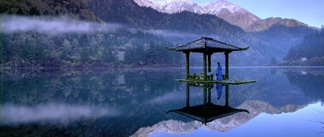 There’s a little making-of featurette on the Miramax DVD of Hero[1] that has some decent interviews with the cast and crew along with some breathless Hollywood narration. Maggie Cheung, Tony Leung and Donnie Yen speak impeccable English, which makes one wonder what might have been if Hollywood wasn’t so racist and dumb, while Ching Siu-tung sports some questionably-dyed hair and Christopher Doyle complains about the lack of bars in the remote deserts of Western China. After the usual rigamarole about shooting challenges and directorial perfectionism, someone asked Zhang Yimou what he thought the film was about, which he either answered honestly or deftly dodged by asserting that what he wanted people to take from the film, long after they’ve forgotten the plot, are the memories of certain images: two women in red fighting among swirling yellow leaves, two sorrowful men flying and dueling on a lake as still as a mirror, a sky of black arrows, a desert moonscape haunted by lonely figures in white. Taken at his word, he undoubtedly succeeded: Hero builds upon the aestheticization of wuxia begun with Ashes of Time and made popular by Crouching Tiger, Hidden Dragon: it’s undeniably beautiful. His two follow-up films, House of Flying Daggers and Curse of the Golden Flower are as well, but where the former luxuriates in the irrational melodrama of tragic romance and the latter is consumed by the emptiness at the heart of its own baroque decadence, there’s a reticence to Hero, a by-product of its episodic structure, narrative instability and potentially repellent politics.